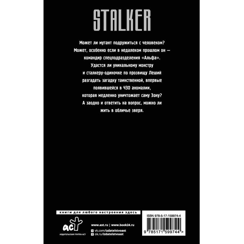Может ли мутант подружиться с человеком? Может, особенно если в недалеком прошлом он - командир спецподразделения "Альфа". Удастся ли уникальному монстру и сталкеру-одиночке по прозвищу Леший разгадать загадку таинственной, впервые появившейся в ЧЗО аномалии, которая медленно уничтожает саму Зону? А заодно и ответить на вопрос, можно ли жить в обличье зверя.