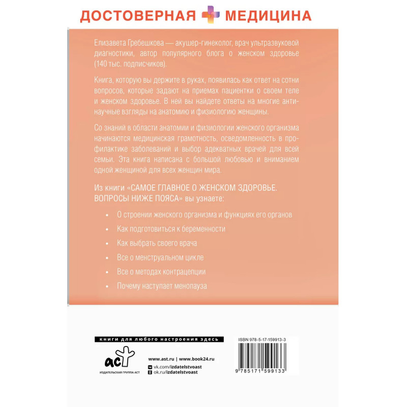 Самое главное о женском здоровье. Вопросы ниже пояса. Тело женщины меняется на протяжении всей жизни и часто остается загадкой для самих женщин. Мифов о женском теле множество, а найти среди них проверенную и полезную информацию довольно сложно. В книге "Самое главное о женском здоровье. Вопросы ниже пояса" собраны базовые знания из области анатомии и физиологии женского организма. Вы получите четкое представление о том, как устроено женское тело, за что отвечают в нем те или иные органы, системы и процессы, а также получите актуальные рекомендации от опытного акушера-гинеколога по гигиене, профилактике заболеваний и сексуальном поведении, необходимые для полноценной и здоровой жизни женщины любого возраста. Пособие написано простым языком, включает подробные описания, а также наглядные иллюстрации и схемы. С заботой о женском здоровье!