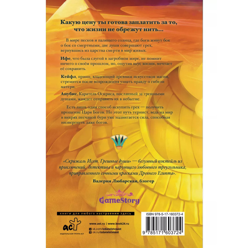 Скрижаль Исет. Грешные души. Встречайте долгожданного "первенца" из будущей трилогии - книгу В. Мишиной "Скрижаль Исет. Грешные души", написанную по одноименной визуальной новелле мобильного приложения "Лига Мечтателей". В романе сплетаются жизни смертных, чудовищ и богов. Вас ждет история, написанная на древних папирусах, о двух душах, совершивших страшный грех. Главные герои - Ифе, аментет из загробного мира, и Кейфл, принц, владеющий древним искусством магии. Силой провидения их души встречаются, чтобы покинуть мир мертвых. Герои только начинают ценить жизнь и исполнять свой долг на земле, как по их следу уже отправляется Каратель Осириса, Анубис, желающий покарать грешные души и вернуть их в небытие. Получат ли герои прощение Царя Богов и даруют ли им жизнь? Или их настигнет кара неведомой силы, поднимающаяся из песков пустыни?