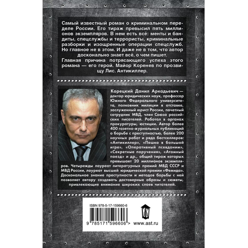 Антикиллер. - Самый известный роман о криминальном переделе России. - Захватывающая история о харизматичном майоре Кореневе - антикиллере по прозвищу Лис. - Роман был экранизирован Егором Кончаловским в 2002 году, главную роль исполнил Гоша Куценко. Данил Корецкий - признанный мастер детективного жанра и один из самых читаемых писателей в России, автор бестселлеров "Рок-н-ролл под Кремлем", "Пешка в большой игре", "Оперативный псевдоним" и многих других. Общий тираж книг писателя превышает 20 миллионов экземпляров!