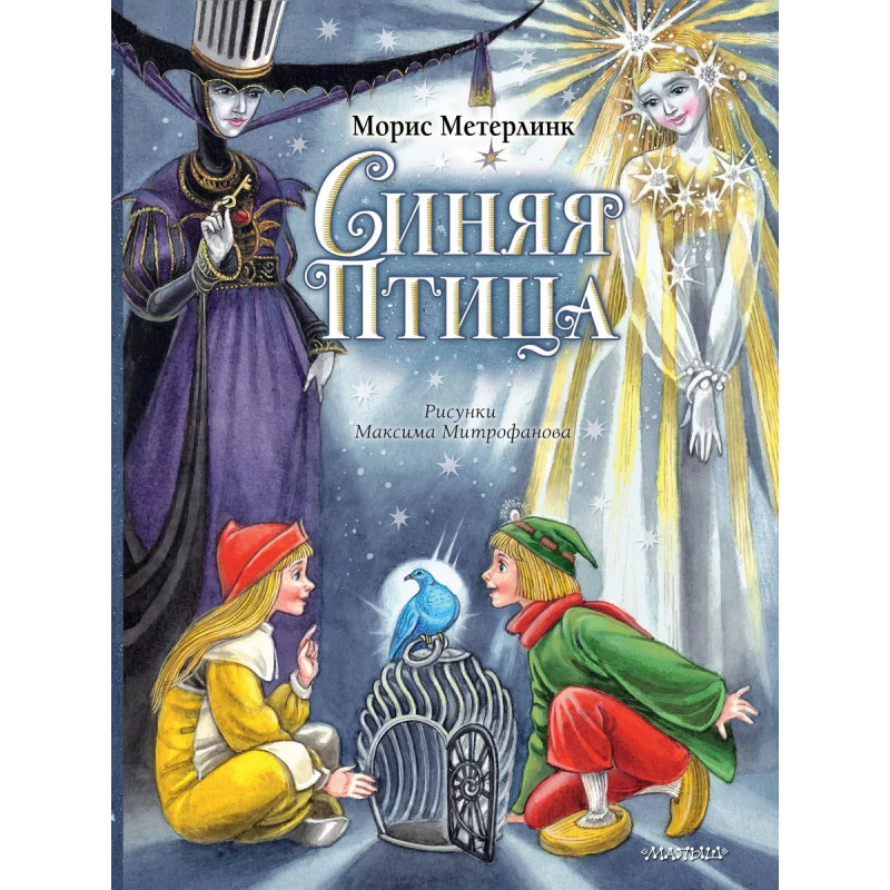 Синяя Птица. Рисунки М. Митрофанова. Морис Метерлинк - бельгийский писатель, философ, лауреат Нобелевской премии по литературе. В 1905 году написал пьесу-притчу "Синяя птица", ставшую одним из главных событий XX века: её ставили на сценах театров, снимали фильмы, записывали радиоспектакли. Гражданская жена писателя Жоржетта Леблан сделала из пьесы вариант сказки для детей. Наполненная добротой и верой, сказка о Синей птице, символе счастья и надежд, по сей день продолжает трогать сердца людей и завоёвывать поклонников по всему миру. В Рождественскую ночь в дверь брата и сестры Тильтиля и Митиль постучалась фея Берилюна. Её внучка больна, и поможет ей только Синяя Птица. Но где её искать? Выполнить это непростое задание и предстоит ребятам. На помощь им приходят ожившие Хлеб, Сахар, Огонь и Вода, а ещё верный пёс Тило и хитрая кошка Тилетта. Героям предстоит нелёгкий путь: они заглянут в чертоги Ночи, наведаются в Страну Воспоминаний, побывают в Царстве Будущего. Однако Синей Птицы нигде нет. Где же ты прячешься, Синяя Птица? Пересказ Леонида Яхн