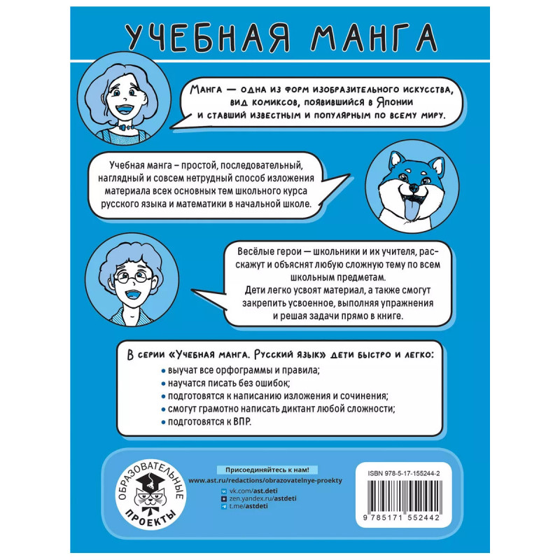 Учебная манга. Русский язык. Спряжение глаголов. Учебная манга - новая серия книг издательства АСТ. Манга - одна из форм изобразительного искусства, вид комиксов, появившийся в Японии и ставший известным и популярным по всему миру. Учебная манга - простой, последовательный, наглядный и совсем нетрудный способ изложения материала всех основных тем школьного курса русского языка и математики в начальной школе. Весёлые герои - ровесники младших школьников и их учителя, расскажут и объяснят любую сложную тему по всем школьным предметам. Дети легко усвоят материал, а также смогут закрепить усвоенное, выполняя упражнения и решая задачи прямо в книге. В серии "Учебная манга. Русский язык" дети быстро и легко: - выучат все орфограммы и правила - научатся писать без ошибок - подготовятся к написанию изложения и сочинения - смогут грамотно написать диктант любой сложности - подготовятся к ВПР.