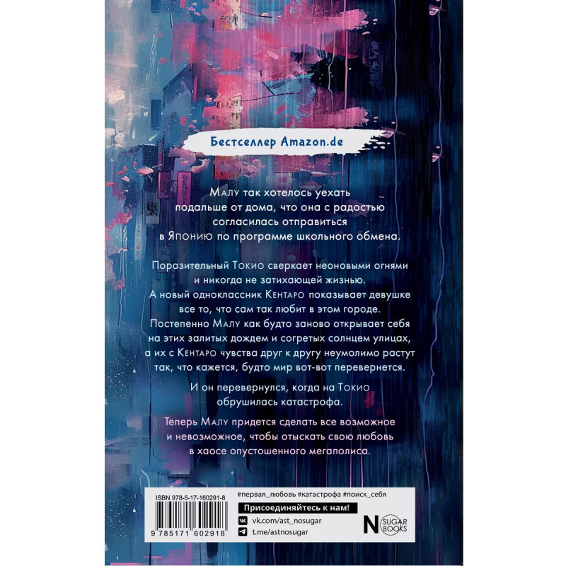 Дождь в Токио. Малу так хотелось уехать подальше от дома, что она с радостью согласилась отправиться в Японию по программе школьного обмена. Поразительный Токио сверкает неоновыми огнями и никогда не затихающей жизнью. А новый одноклассник Кентаро показывает девушке все то, что сам так любит в этом городе. Постепенно Малу как будто заново открывает себя на этих залитых дождем и согретых солнцем улицах, а их с Кентаро чувства друг к другу неумолимо растут так, что кажется, будто мир вот-вот перевернется. И он перевернулся, когда на Токио обрушилась катастрофа. Теперь Малу придется сделать все возможное и невозможное, чтобы отыскать свою любовь в хаосе опустошенного мегаполиса.