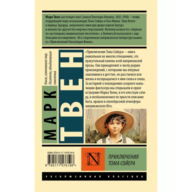 Приключения Тома Сойера. "Приключения Тома Сойера" - книга уникальная во многих отношениях, это краеугольный камень все американской прозы. Она принадлежит к числу редких произведений, с которыми мы впервые знакомимся с детстве, не расстаемся всю жизнь и возращаемся к ним снова и снова. За историей о похождениях озорного мальчишки-фантазера мы открываем едкое остроумие Марка Твена, и его хлесткую сатиру, и необыкновенное по яркости описание быта, нравов и своеобразной атмосферы американского Юга.