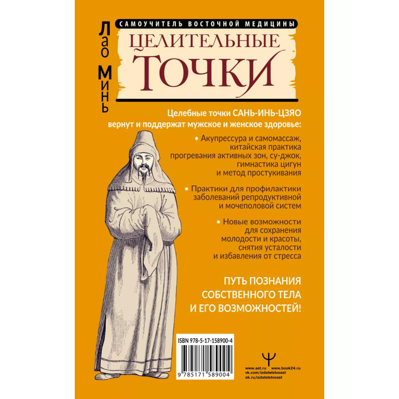 САНЬ-ИНЬ-ЦЗЯО и другие целительные точки для мужского и женского здоровья. САНЬ-ИНЬ-ЦЗЯО - удивительные точки на нашем теле, открывающие возможности для комплексного укрепления женского и мужского здоровья! Лао Минь, специалист по восточным оздоровительным практикам, научит вас способам профилактики заболеваний репродуктивной и мочеполовой систем и познакомит с методами медицины Востока, ускоряющими выздоровление. Лучшие техники восточной медицины помогут при нарушениях менструального цикла, климактерических симптомах, импотенции и простатите: " акупрессура; " самомассаж; " китайская практика прогревания активных зон; " корейский метод су-джок; " древняя гимнастика цигун; " молодой метод простукивания. Также в книге вы найдете приемы для сохранения молодости и красоты, снятия усталости и избавления от стресса. Вы узнаете, как: " провести самодиагностику; " унять боль; " помочь организму запустить резервные возможности для самооздоровления; " понять причину того или иного заболевания и мягко и бережно постараться убрать ее; " увеличить эффективность привычного лечения. Подробные схем