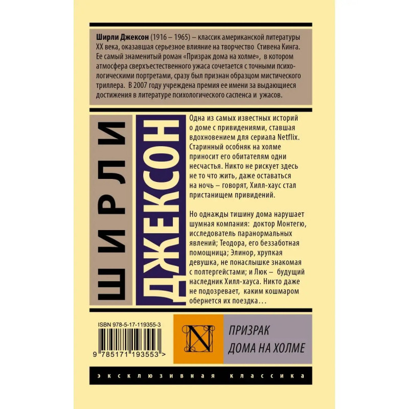 Одна из самых известных историй о доме с приведениями, ставшая вдохновением для сериала Netflix. Старинный особняк на холме приносит его обитателям одни несчастья. Никто не рискует здесь не то, что жить, даже оставаться на ночь говорят, Хилл-хаус стал пристанищем привидений. Но однажды тишину дома нарушает шумная компания: доктор Монтегю, исследователь паранормальных явлений; Теодора, его беззаботная помощница; Элинор, хрупкая девушка, не понаслышке знакомая с полтергейстами; и Люк будущий наследник Хилл-хауса. Никто даже не подозревает, каким кошмаром обернется их поездка