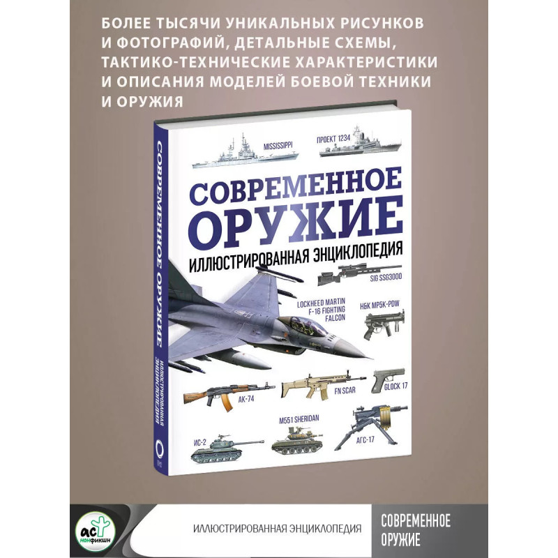 Современное оружие. Иллюстрированная энциклопедия. В книге представлены образцы современной бронетехники, самолетов и вертолетов, стрелкового оружия и боевых кораблей. Она содержит тысячи уникальных рисунков и фотографий, детальные схемы, тактико-технические характеристики и описания моделей боевой техники и оружия, охватывающие период с момента окончания Второй мировой войны до нашего времени. Книга адресована всем интересующимся историей вооружений и их современным состоянием.