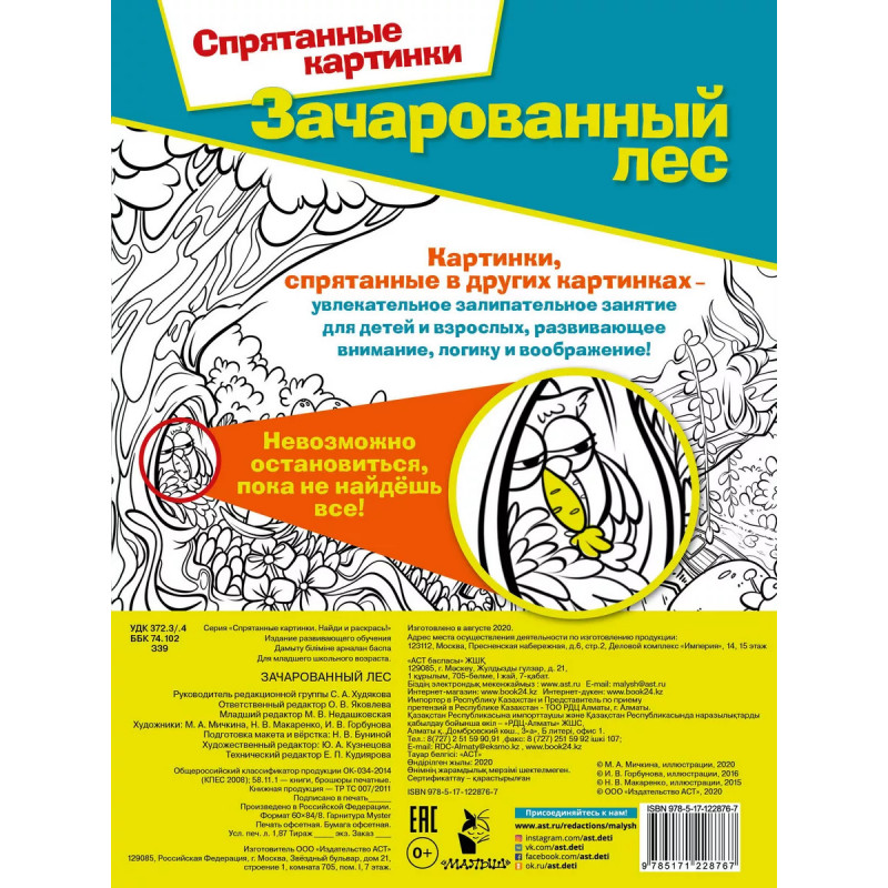 Зачарованный лес. Волшебные картинки спрятались в сказочных сюжетах зачарованного леса. Банан в улье, замок в лягушке, медуза в листве, ракушка в облаке - картинки, спрятанные в других картинках! Новый увлекательно-залипательный жанр для развития внимания и фантазии. Невозможно остановиться, пока не найдёшь все!