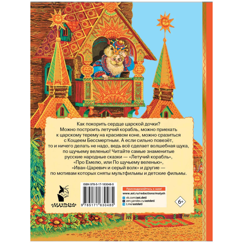 Как покорить сердце царской дочки? Можно построить летучий корабль, можно приехать к царскому терему на красивом коне, можно сразиться с Кощеем Бессмертным. А если сильно повезёт, то и ничего делать не надо, ведь всё сделает волшебная щука, по щучьему веленью! Читайте самые знаменитые русские народные сказки - "Летучий корабль", "Про Емелю, или По щучьему веленью", "Иван-Царевич и серый волк" и другие - по мотивам которых сняты мультфильмы и детские фильмы.