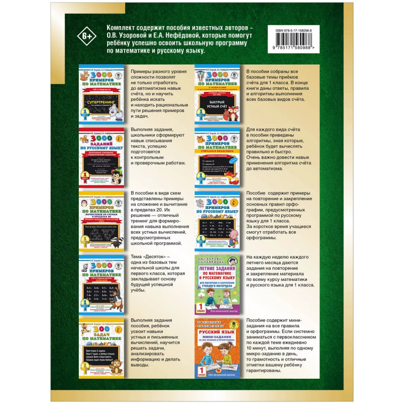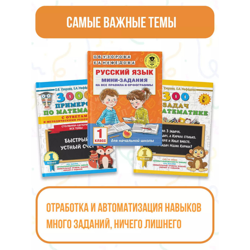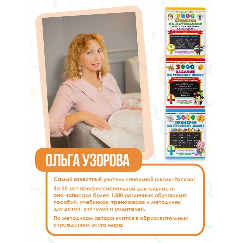 О. В. Узорова и Е.А Нефёдова известные педагоги-практики, авторы самых издаваемых учебников и учебных пособий в России. Основанные на авторской методике, доказавшей свою эффективность миллионными тиражами, эти пособия помогут родителям подготовить ребенка к школе, а ученикам легко и эффективно освоить программу начальной школы. Все, что поможет ребенку стать успешным в учёбе, вы найдёте в книгах Узоровой и Нефёдовой: тексты для 1 класса, контрольное списывание, диктанты по русскому языку, подготовка к диктантам, задания по русскому языку, тесты по русскому языку, примеры по математике, сложение, вычитание, задания по математике, задачи по математике, контрольная работа, самостоятельная работа, проверочные работы, тесты по математике, математические диктанты, устный счёт, счёт в пределах 20, справочное пособие, рабочая тетрадь, комплект рабочих тетрадей, решаем примеры, решаем задачи, тренинг, разные виды сложности, сборники заданий, комплексные работы, летние задания, 1 класс, возраст 6-7 лет.
