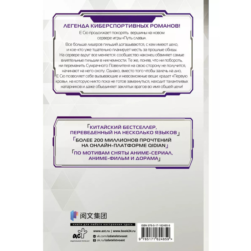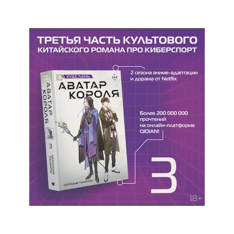 Аватар короля. Молодые таланты. Книга 3. Продолжение китайского киберспортивного бестселлера! Захватывающий веб-роман, переведенный на несколько языков, включая английский! Более 200 млн. прочтений на онлайн-платформе QIDIAN! Ничто не может сломить дух Е Сю, скрывающегося под новым аватаром Сумрачного Повелителя в мире игры "Путь славы". Лидеры гильдий начинают догадываться, кто стоит за таинственным персонажем и жаждет мести. А Е Сю тем временем совершает невиданную дерзость и крадет "Первую кровь", на что никто прежде не решался! Чем же закончится это противостояние? Захватывающая экшн-RPG история, по которой вышли несколько сезонов аниме, дорама и аниме-фильм!