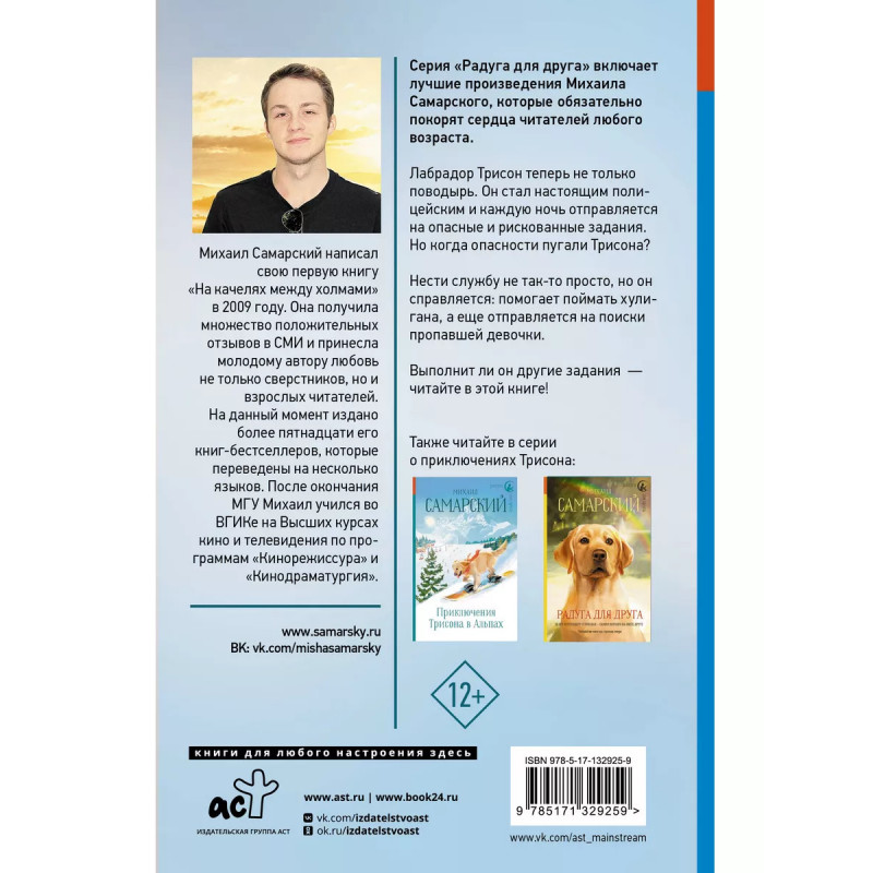 Как Трисон стал полицейским, или Правила добрых дел. Лабрадор Трисон теперь не только поводырь. Он стал настоящим полицейским и каждую ночь отправляется на опасные и рискованные задания. Но когда опасности пугали Трисона? Нести службу не так-то просто, но он справляется: помогает поймать хулигана, а еще отправляется на поиски пропавшей девочки. Выполнит ли он другие задания - читайте в этой книге!