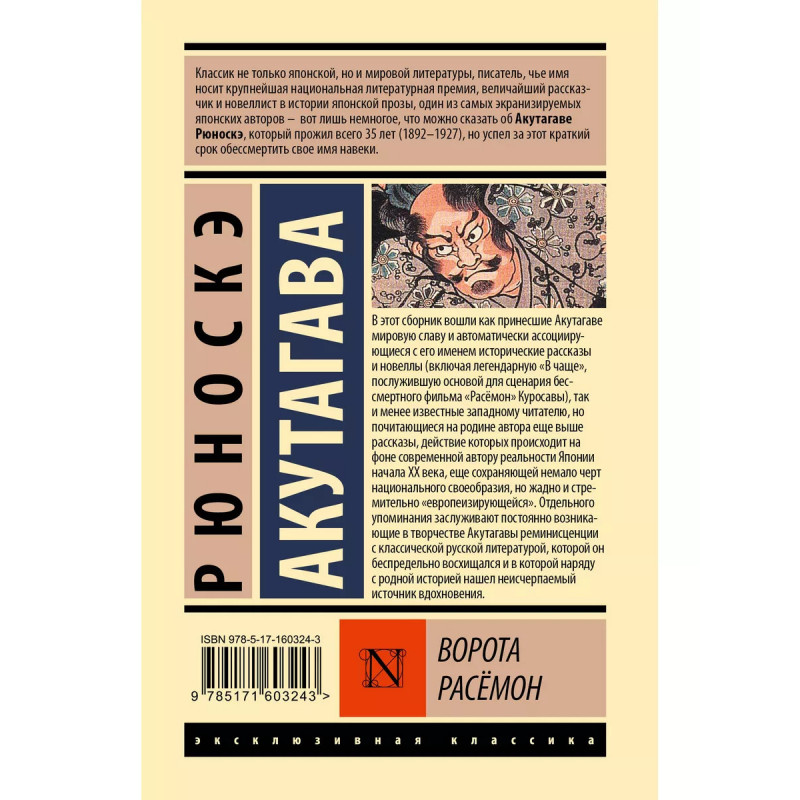 Ворота Расёмон. В этот сборник вошли как принесшие Акутагаве мировую славу и автоматически ассоциирующиеся с его именем исторические рассказы и новеллы (включая легендарную "В чаще", послужившую основой для сценария бессмертного фильма "Расёмон" Куросавы), так и менее известные западному читателю, но почитающиеся на родине автора еще выше рассказы, действие которых происходит на фоне современной автору реальности Японии начала ХХ века, еще сохраняющей немало черт национального своеобразия, но жадно и стремительно "европеизирующейся". Отдельного упоминания заслуживают постоянно возникающие в творчестве Акутагавы реминисценции с классической русской литературой, которой он беспредельно восхищался и в которой наряду с родной историей нашел неисчерпаемый источник вдохновения.