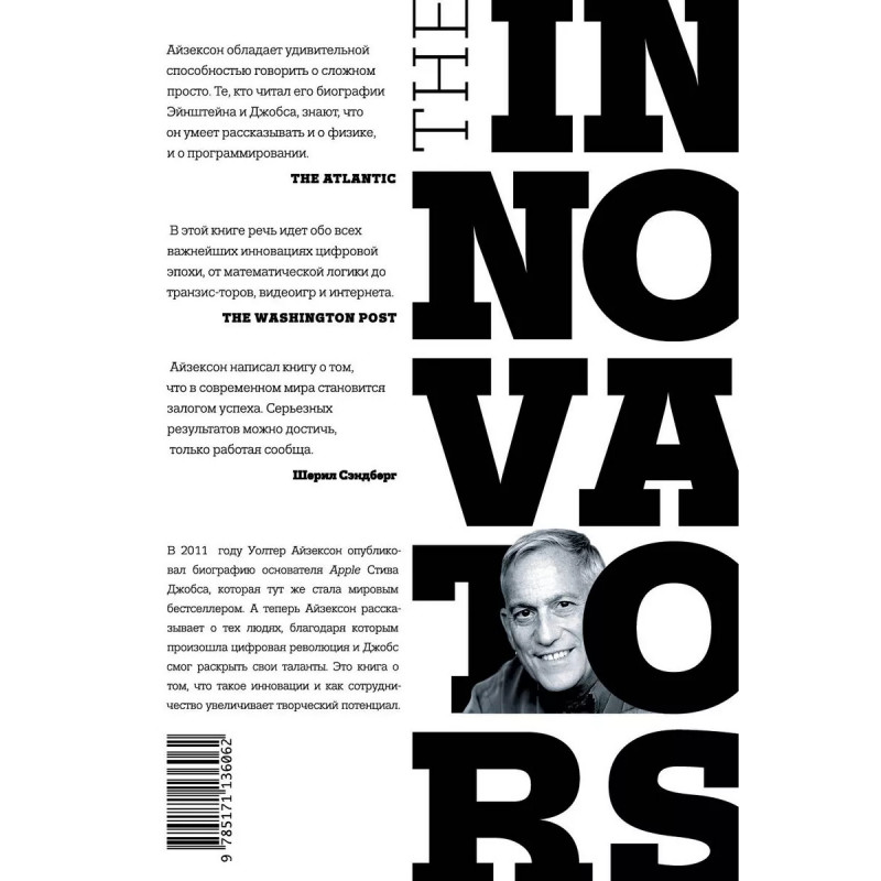 После ставшей мировым бестселлером биографии Стива Джобса Айзексон написал о людях, благодаря которым появились компьютеры и интернет. Это история о разных этапах цифровой революции, о том, как добиваться того, чтобы мечты претворялись в жизнь. Начинается она с сороковых годов XIX века, с Ады Лавлейс, первой нащупавшей принципы компьютерного программирования. А дальше следует рассказ о тех, без кого не было бы ни компьютеров, ни интернета, о Вэниваре Буше, Алане Тьюринге, Билле Гейтсе, Стиве Возняке, СтивеДжобсе и Ларри Пейдже.