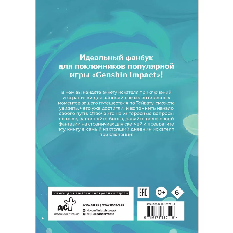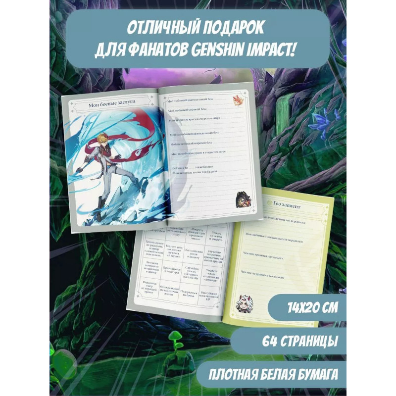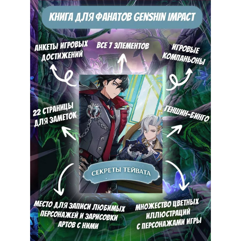 Секреты Тейвата. Идеальный фанбук для поклонников популярной игры "Genshin Impact"! В нем вы найдете анкету искателя приключений и странички для записей самых интересных моментов вашего путешествия по Тейвату; сможете увидеть, чего уже достигли, и вспомнить начало своего пути. Отвечайте на интересные вопросы по игре, заполняйте бинго, давайте волю своей фантазии на страничках для скетчей и превратите эту книгу в самый настоящий дневник искателя приключений!