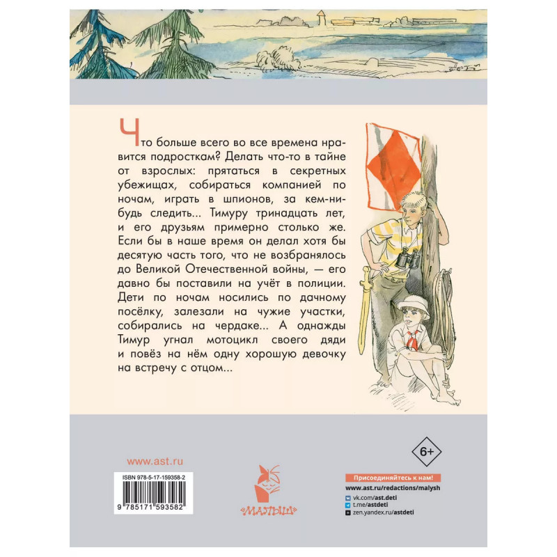 Тимур и его команда. Что больше всего во все времена нравится подросткам? Делать чтото в тайне от взрослых: прятаться в секретных убежищах, собираться компанией по ночам, играть в шпионов, за кемнибудь следить Тимуру тринадцать лет, и его друзьям примерно столько же. Если бы в наше время он делал хотя бы десятую часть того, что не возбранялось до Великой Отечественной войны, - его давно бы поставили на учёт в полиции. Дети по ночам носились по дачному посёлку, залезали на чужие участки, собирались на чердаке А однажды Тимур угнал мотоцикл своего дяди и повёз на нём одну хорошую девочку на встречу с отцом