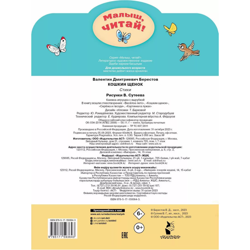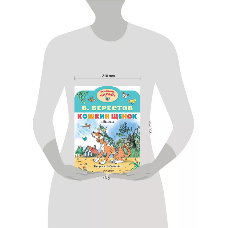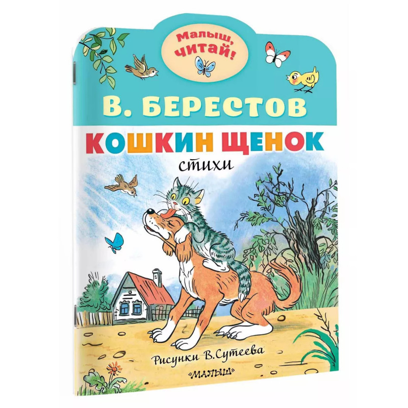 Кошкин щенок. Рисунки В. Сутеева. Однажды у кошки появился щенок, в лужах появились картинки, и пришло весёлое лето. Всё это и многое другое происходит в стихах знаменитого детского поэта В. Берестова. Рисунки ко всем стихам нарисовал В. Сутеев.