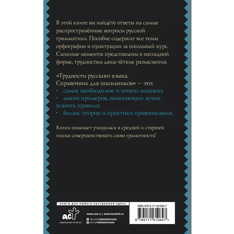 В данном издании вы найдёте ответы на самые распространённые вопросы орфографии и пунктуации. Структура книги позволяет легко отыскать интересующее правило благодаря организации материала по темам, каждая из которых является ключом к решению грамматической трудности. В разделе приложений дан теоретический материал. В первую очередь справочник предназначен учащимся в средней и старшей школе.