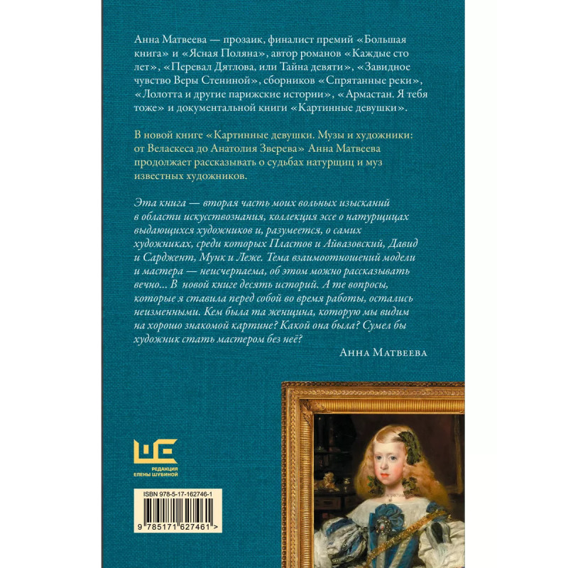 Долгожданная новинка автора Тотального диктанта 2024! Анна Матвеева известный прозаик, финалист премий Большая книга, Национальный бестселлер и Ясная Поляна. Кем была та женщина, которую мы видим на хорошо знакомой картине? Какой она была? Сумел бы художник стать мастером без неё? Книга о музах и натурщицах великих мастеров: от Веласкеса до Анатолия Зверева Многогранный труд как в области искусствоведения, так и в области истории человеческих отношений в контексте эпох и сопровождающих их нравов.