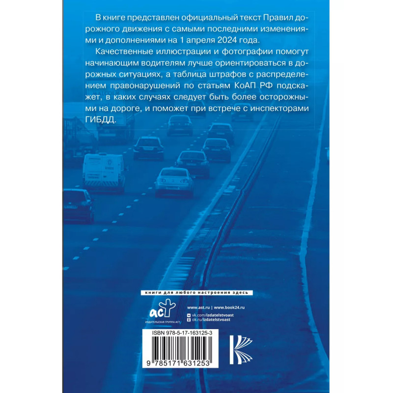 В книге представлен официальный текст Правил дорожного движения с самыми последними изменениями и дополнениями на 1 апреля 2024 года. Качественные иллюстрации и фотографии помогут начинающим водителям лучше ориентироваться в дорожных ситуациях, а таблица штрафов с распределением правонарушений по статьям КоАП РФ подскажет, в каких случаях следует быть более осторожными на дороге, и поможет при встрече с инспекторами ГИБДД. Издание учитывает все изменения, опубликованные в официальных источниках на момент подписания издания в печать.