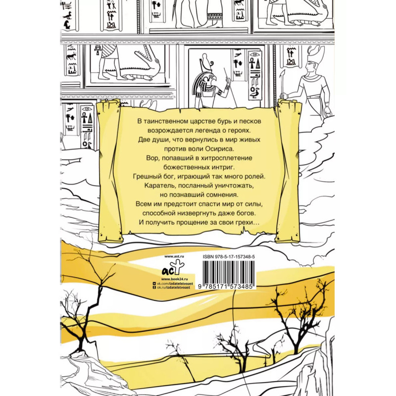 В таинственном царстве бурь и песков возрождается легенда о героях, которым предстоит спасти мир от силы, способной низвергнуть даже богов, и получить прощение за свои грехи. История о двух душах, которые вернулись из царства смерти, оживает на страницах раскраски. Вместе с полюбившимися героями Ифе, Кейфлом, Атсу, Сетом и Анубисом, пройдите увлекательный путь, начавшийся на Полях Иалу: вы побываете в священном Городе Столбов, пройдете по холмам песчаной пустыни, посетите красочный праздник в честь радостной богини Бастет, а также разгадаете тайны и заговоры древних богов.