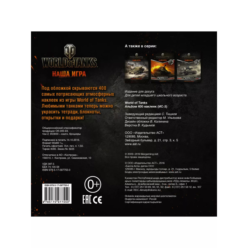 Под обложкой скрываются 400 самых потрясающих атмосферных наклеек из игры World of Tanks. Любимыми танками теперь можно украсить тетради, блокноты, открытки и подарки!