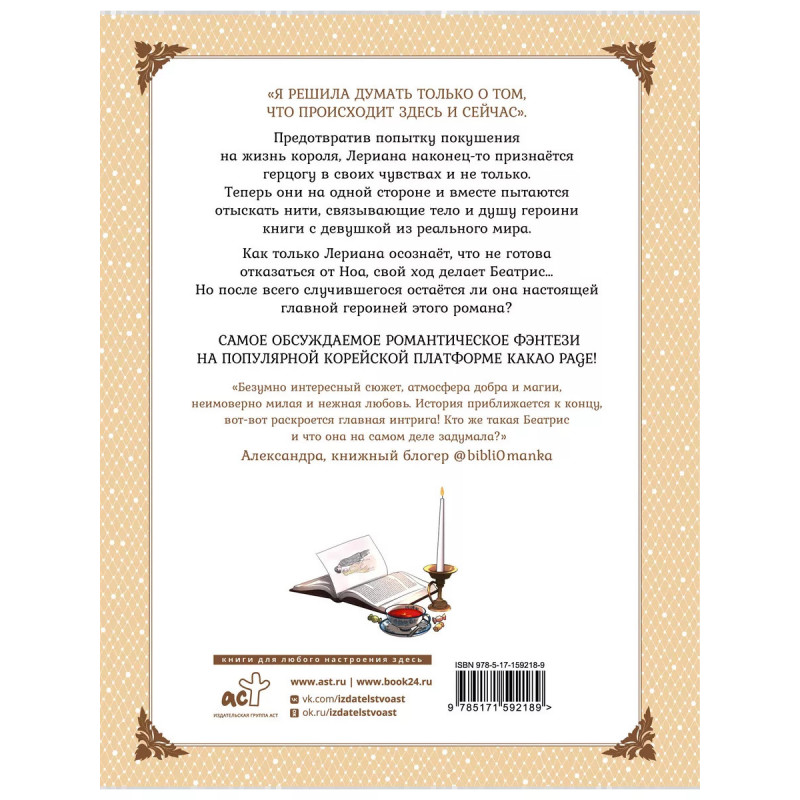 Продолжение самого обсуждаемого романтического фэнтези на популярной корейской платформе Kakaopage. Понравится поклонникам романтики, магии и исекая (историй про перерождение). Полюбившаяся многим история близится к финалу. Самое время насладиться атмосферой романтики, понаблюдать за отношениями Лерианы и ее возлюбленного и гадать, что скрывает Беатрис. Интрига скоро раскроется!