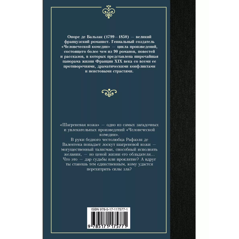 "Шагреневая кожа" - одно из самых загадочных и увлекательных произведений "Человеческой комедии". В руки бедного честолюбца Рафаэля де Валантена попадает лоскут шагреневой кожи - могущественный талисман, способный исполнять желания, - но ценой жизни его обладателя Что это - дар судьбы или проклятие? А вдруг ты станешь тем единственным, кому удастся перехитрить силы зла?