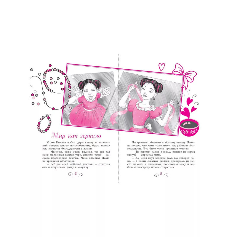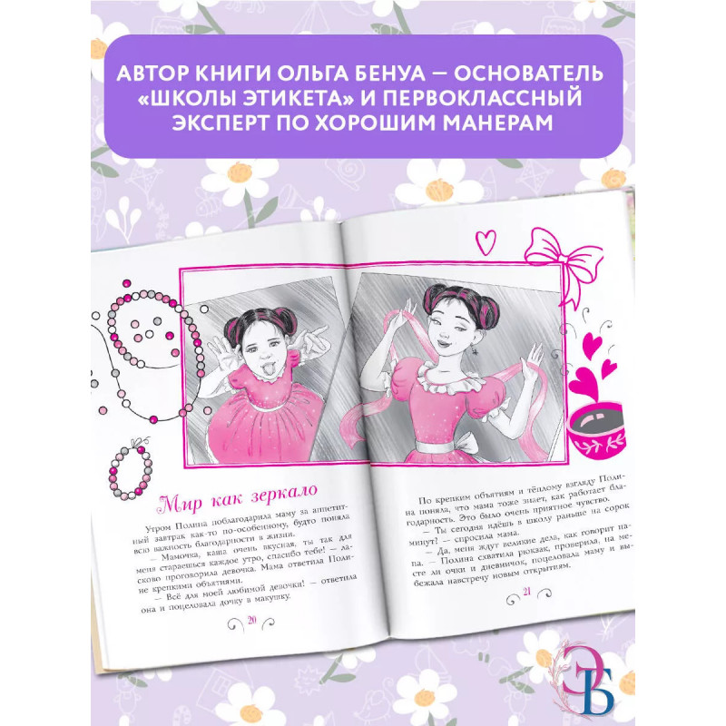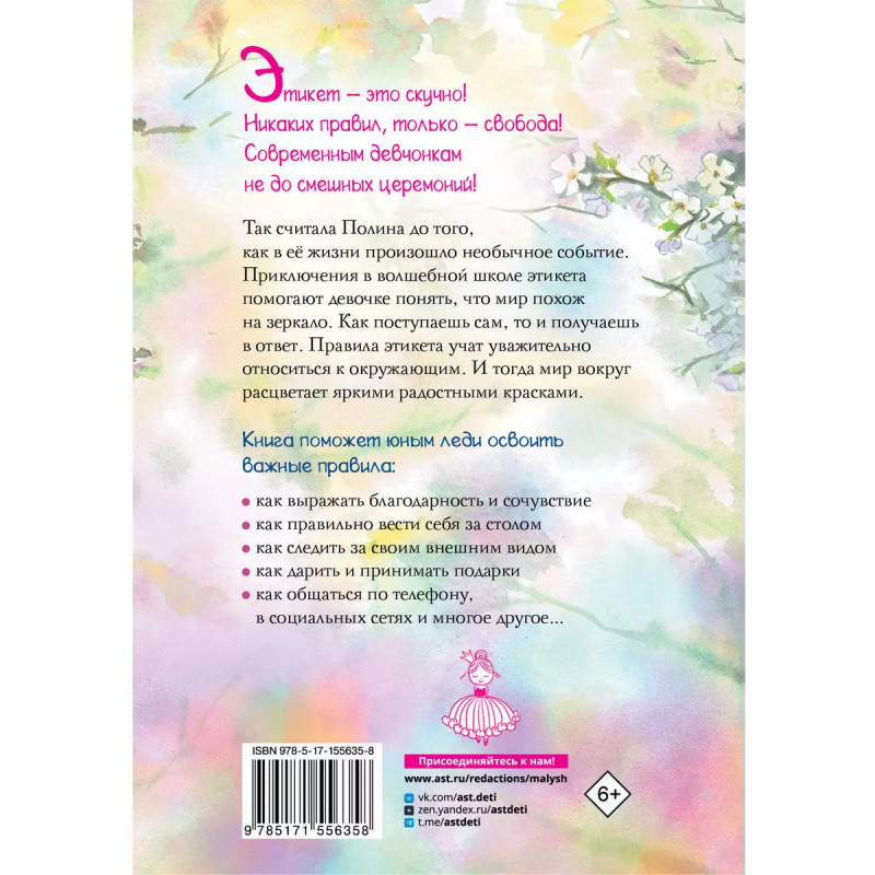 Школа этикета и хороших манер. Этикет - это скучно! Никаких правил, - только свобода! Современным девчонками не до смешных церемоний! Так считала Полина до того, как в ее жизни произошло необычное событие. Приключения в волшебной школе этикета помогают девочке понять, что мир похож на зеркало. Как поступаешь сам, то и получаешь в ответ. Правила этикета учат уважительно относиться к окружающим. И тогда мир вокруг расцветает яркими радостными красками. Книга поможет юным леди освоить важные правила: " как выражать благодарность и сочувствие " как правильно вести себя за столом " как следить за своим внешним видом " как дарить и принимать подарки " как общаться по телефону, в социальных сетях и многое другое.
