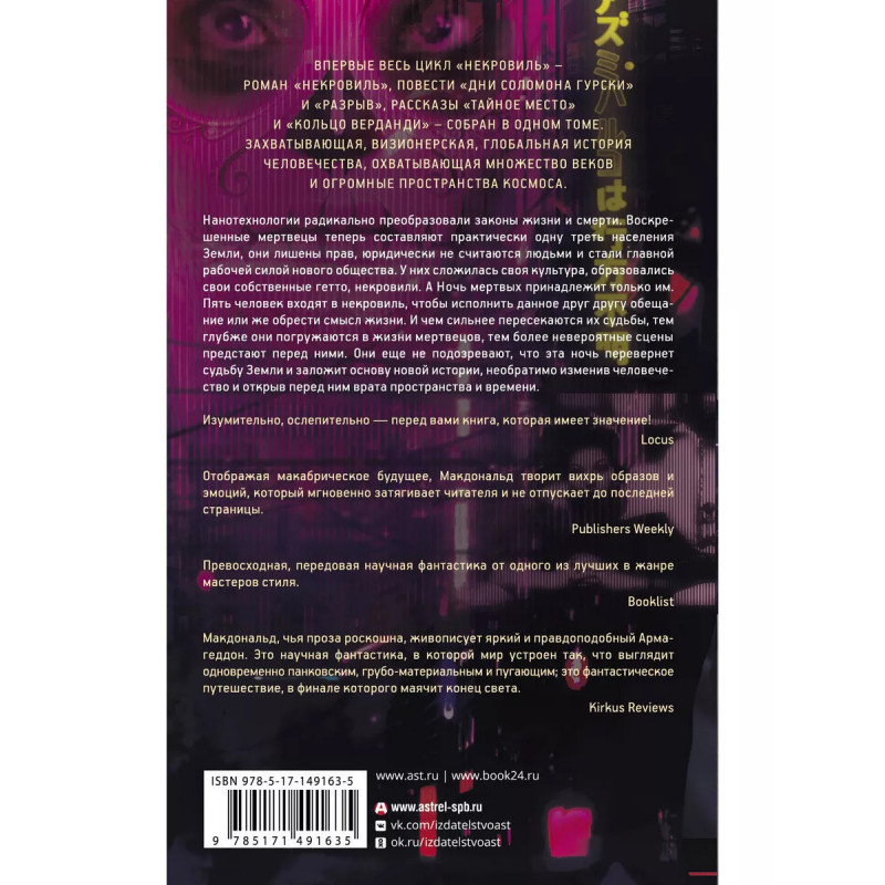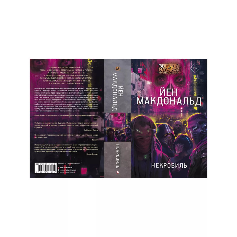 Некровиль. Некровиль. Обшарпанное гетто бывших мертвецов. Ночные убийства. Кислотное небо, за которым скрывается космос - тёмный, пустой, наполненный отчаянием, испещрённый космическими кораблями, покидающими перенаселённую Землю. Землю, охваченную войной между мёртвыми и живыми: новыми рабами и новыми рабовладельцами Величественная история выхода человечества на новый уровень, рассказанная Йеном Макдональдом - признанным классиком британской фантастики и мастером киберпанка.