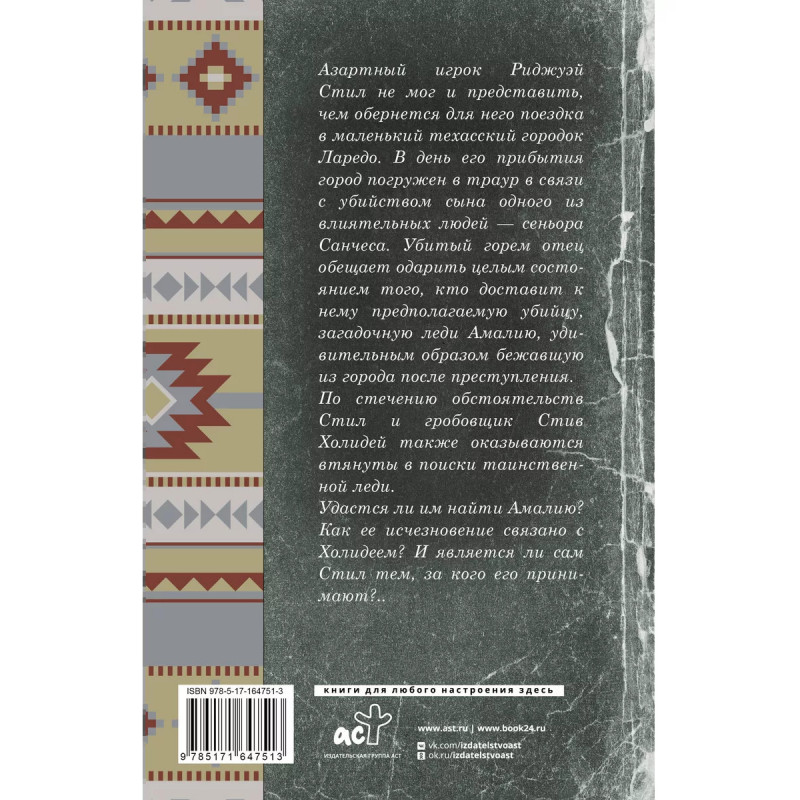 Азартный игрок Риджуэй Стил не мог и представить, чем обернется для него поездка в маленький техасский городок Ларедо. В день его прибытия город погружен в траур в связи с убийством сына одного из влиятельных людей, сеньора Санчеса. Убитый горем отец обещает одарить целым состоянием того, кто доставит к нему предполагаемую убийцу, загадочную леди Амалию, удивительным образом бежавшую из города после преступления. По стечению обстоятельств Стил и гробовщик Стив Холидей также оказываются втянуты в поиски таинственной леди. Удастся ли им найти Амалию? Как ее исчезновение связано с Холидеем? И является ли сам Стил тем, за кого его принимают?..