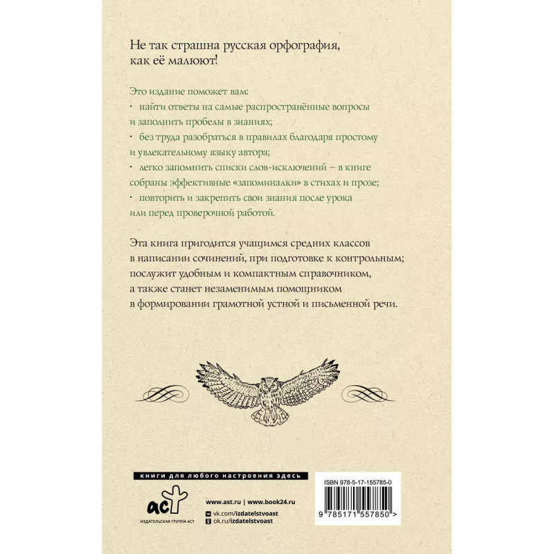 Русский язык. Все правила для средней школы. В этой книге простым языком даются объяснения основных орфографических правил, а также разбираются ошибки в произношении и употреблении слов. Стиль автора позволяет легко усвоить материал, а дополнительные "запоминалки" в стихах и прозе помогают раз и навсегда выучить самые проблемные темы. Издание предназначено учащимся средних классов.