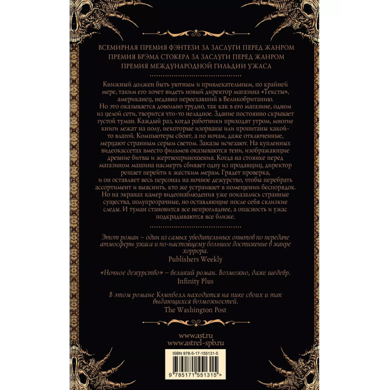 Книжный должен быть уютным и привлекательным, по крайней мере, таким его хочет видеть новый директор магазина "Тексты", американец, недавно переехавший в Великобританию. Но это оказывается довольно трудно, так как в его магазине, одном из целой сети, постоянно творится что-то неладное. Во-первых, здание постоянно скрывает густой туман. Каждый раз, когда работники приходят утром, многие книги лежат на полу, некоторые изорваны или пропитаны какой-то влагой. Компьютеры сбоят, а по ночам, даже отключенные, мерцают странным серым светом. Заказы исчезают. На купленных видеокассетах вместо фильмов оказываются тени, изображающие древние битвы и жертвоприношения. Когда на стоянке перед магазином машина насмерть сбивает одну из продавщиц, директор решает перейти к жестким мерам. Грядет проверка, и он оставляет весь персонал на ночное дежурство, чтобы перебрать ассортимент и выяснить, кто же устраивает в помещении беспорядок...