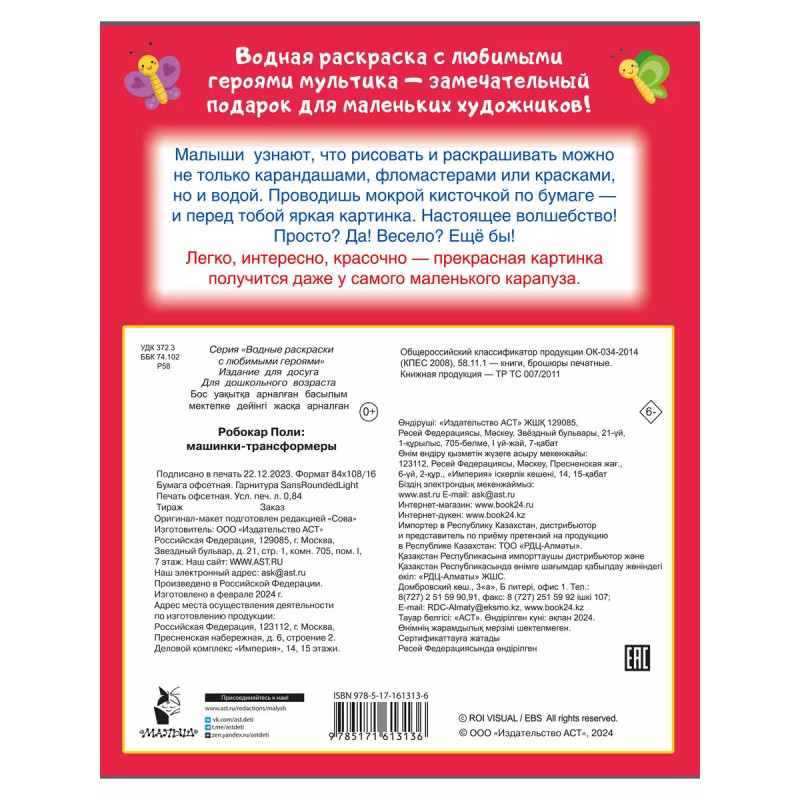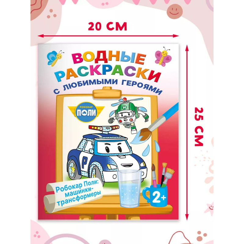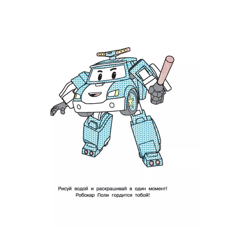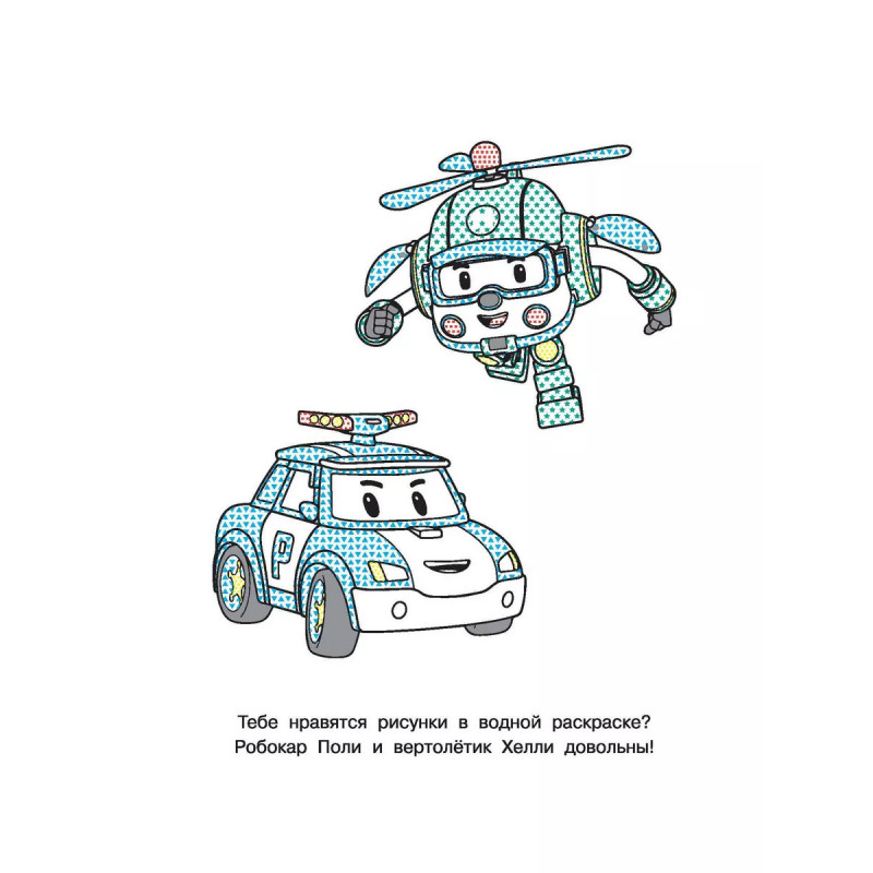 В серии Водные раскраски с любимыми героями картинки из любимого мультика! На страницах вертолётик Хэлли, пожарная машина Рой, скорая помощь Эмбер, полицейский автомобильчик Поли и другие машинки. Лёгким движением руки обычный рисунок превращается в настоящий шедевр! Малышу понадобится одна лишь влажная кисточка и, конечно же, хорошее настроение. Водная раскраска это простая техника для решения сложных задач: ребёнок учится концентрировать внимание, получает представление о форме и цвете, тренирует мелкую моторику и, конечно, радуется, глядя на свой рисунок. Картинка не может не получиться! Замечательные иллюстрации из любимых мультиков. Развивающие задания. Качественная бумага. Удобный для ребёнка размер книги. Благодаря ярким и весёлым рисункам каждое задание станет маленькой игрой. Раскрашивать картинки водой не только увлекательное, весёлое, но и очень полезное занятие.