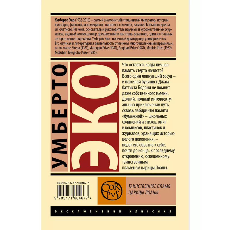 Таинственное пламя царицы Лоаны. "...Я был намерен повоевать за свою автобиографию в глубинах этих коридоров и довоеваться до того, чтоб перед смертью все-таки узнать, каково было мне младенцем видеть склоненное над кроваткой лицо моей мамы". В невероятное по своим масштабам интеллектуальное путешествие мы вновь отправляемся вместе с очередным романом Умберто Эко. Нас сразу же встречает Джамбаттиста Бодони, чья память угасла вследствие несчастного случая. В попытках воссоздать в голове свое прошлое он проводит долгие дни в окружении своих детских книг, писем, газетных вырезок, сохранившихся по сей день. Насколько действительно сильна "бумажная память" - Джамбаттиста проверит на самом себе. Читатели называют это произведение "самым трогательным романом Эко" и не перестают признаваться в любви к остальным книгам автора: "Маятник Фуко", "Остров накануне", "Имя розы" и др.