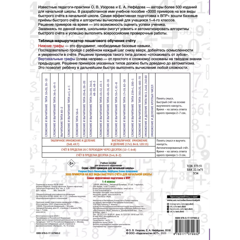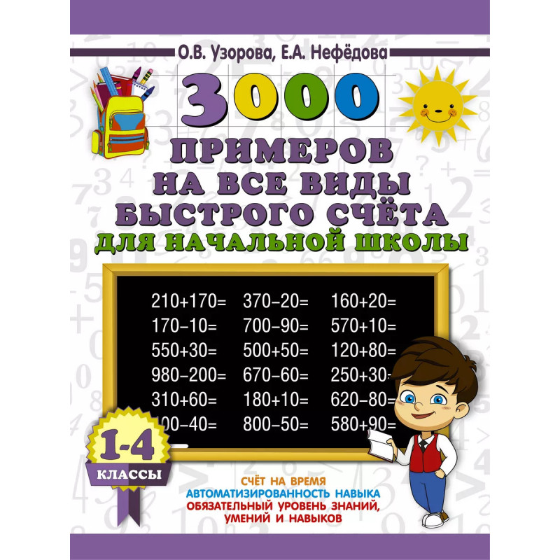 Характеристики 3000 примеров на все виды быстрого счёта в начальной школе.
