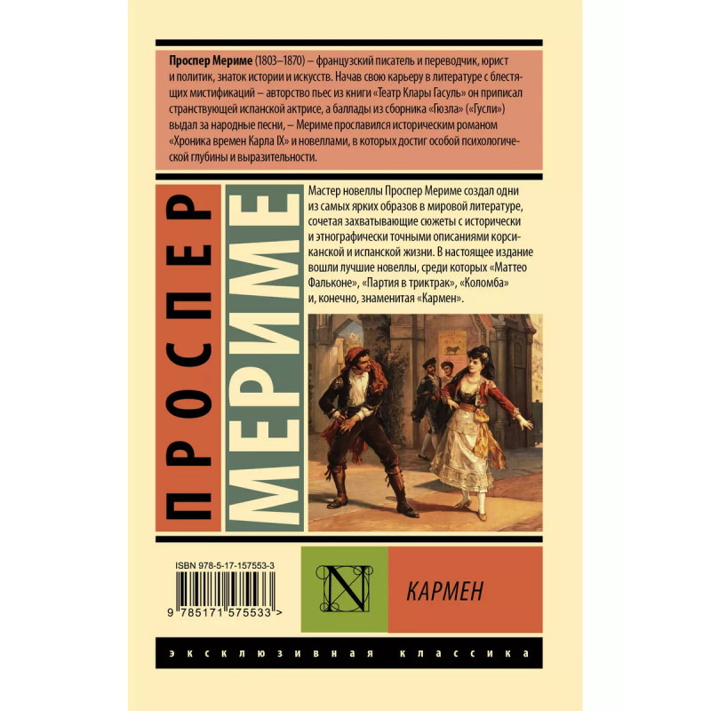 Кармен. Мастер новеллы Проспер Мериме создал одни из самых ярких образов в мировой литературе, сочетая захватывающие сюжеты с исторически и этнографически точными описаниями корсиканской и испанской жизни. В настоящее издание вошли лучшие новеллы, среди которых "Маттео Фальконе", "Партия в триктрак", "Коломба" и, конечно, знаменитая "Кармен".