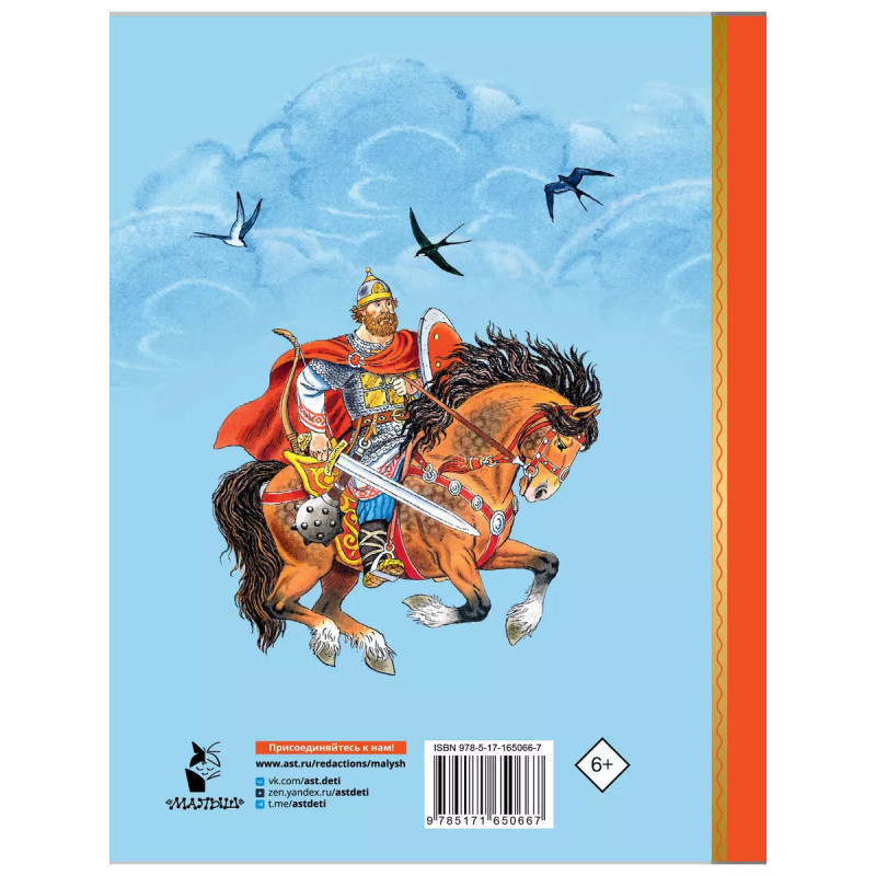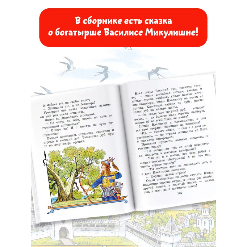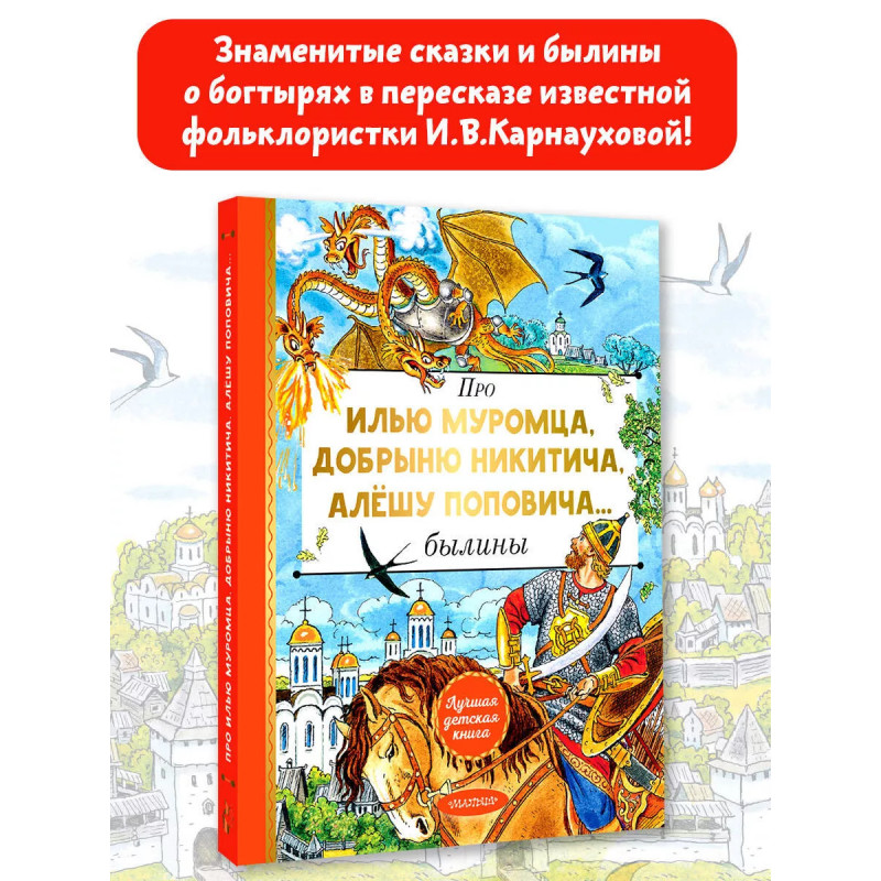В книгу вошли знаменитые былины о великих русских богатырях в пересказе известной фольклористки И.В. Карнауховой. Илья Муромец, Алёша Попович, Добрыня Никитич, Святогор-богатырь, Вольга Всеславьевич об этих богатырях знает и стар и млад. Они очень сильны, за богатством не гонятся, на пирах животы не растят, а защищают русскую землю для чести и славы богатырской. Есть в этой книге и знаменитая былина о Василисе Микулишне богатырше, которая хитростью вызволила своего мужа из заточения. Иллюстрации С. Бордюга и Н. Трепенок. Для младшего школьного возраста.