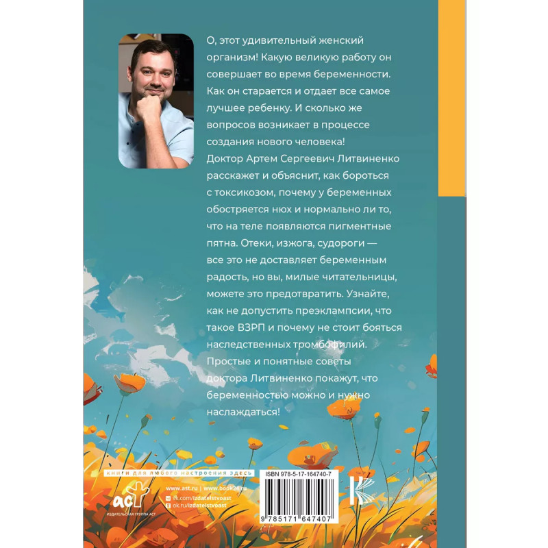 О, этот удивительный женский организм! Какую великую работу он совершает во время беременности. Как он старается и отдает все самое лучшее ребенку. И сколько же вопросов возникает в процессе создания нового человека. Доктор Артём Сергеевич Литвиненко расскажет и объяснит, как бороться с токсикозом, почему у беременных обостряется нюх и нормально ли то, что на теле появляются пигментные пятна. Отеки, изжога, судороги все это не доставляет беременным радость, но вы, милые читательницы, можете это предотвратить. Узнайте, как не допустить преэклампсии, что такое ВЗРП и почему не стоит бояться наследственных тромбофилий. Простые и понятные советы доктора Литвиненко покажут, что беременностью можно и нужно наслаждаться!