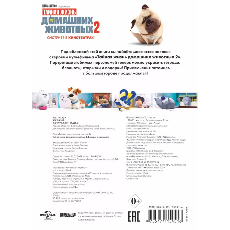 Характеристики Тайная жизнь домашних животных 2. Большая книга наклеек.