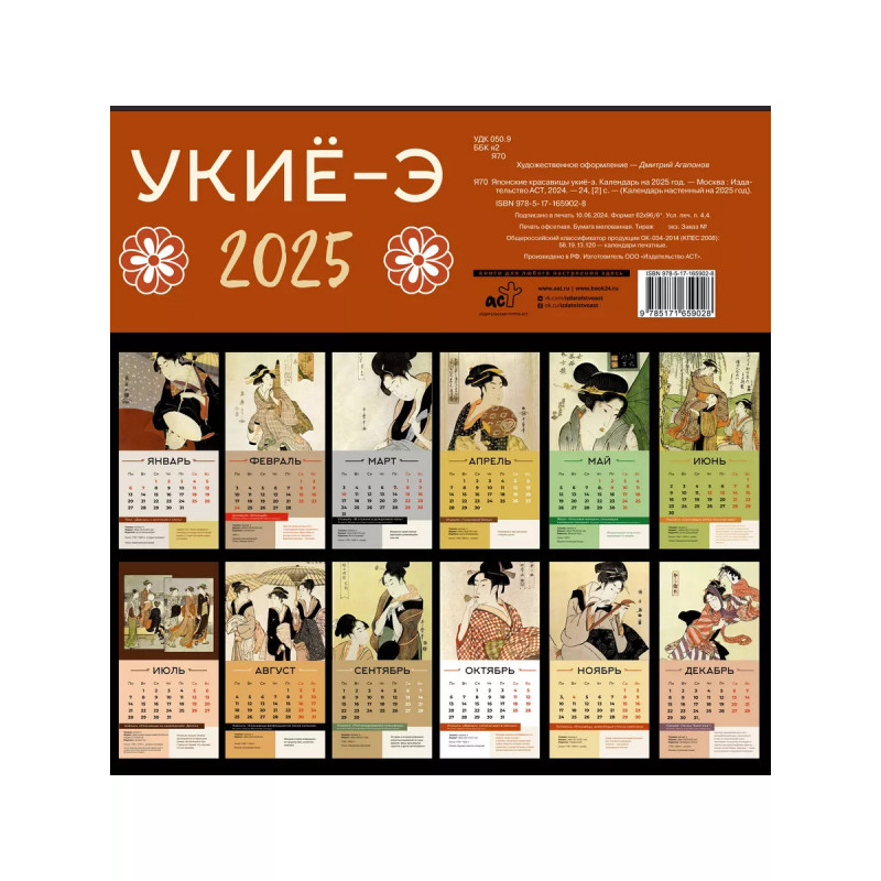 Характеристики Японские красавицы укиё-э. Календарь на 2025 год.