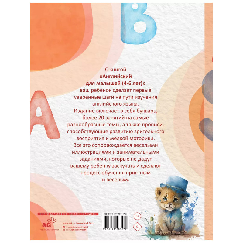 Английский для малышей (4-6 лет). Книга "Английский для малышей (4-6 лет)" содержит все необходимое для того, чтобы ваш ребенок сделал первые уверенные шаги в изучении английского языка. Издание включает в себя букварь, более 2 занятий на самые разнообразные темы, а также прописи, способствующие развитию зрительного восприятия и мелкой моторики. Все это сопровождается веселыми иллюстрациями и занимательными заданиями, которые не дадут вашему ребенку заскучать и сделают процесс обучения приятным и веселым.