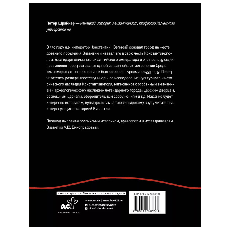 В 330 году н.э. император Константин I Великий основал город на месте древнего поселения Византий и назвал его в свою честь Константинополем. Благодаря вниманию византийского императора и его последующих преемников город оставался одной из важнейших метрополий Средиземноморья до тех пор, пока не был завоеван турками в 1453 году. Перед читателем развертывается уникальное исследование культурного и исторического наследия Константинополя, написанное с особенным вниманием к его археологическому наследию легендарного города: царским дворцам, роскошным церквям, оборонительным сооружениям и т.д. Издание будет интересно историкам, культурологам, а также широкому кругу читателей, интересующихся историей Византии. Перед выполнен российским историком, археологом и исследователем Византии А.Ю. Виноградовым.