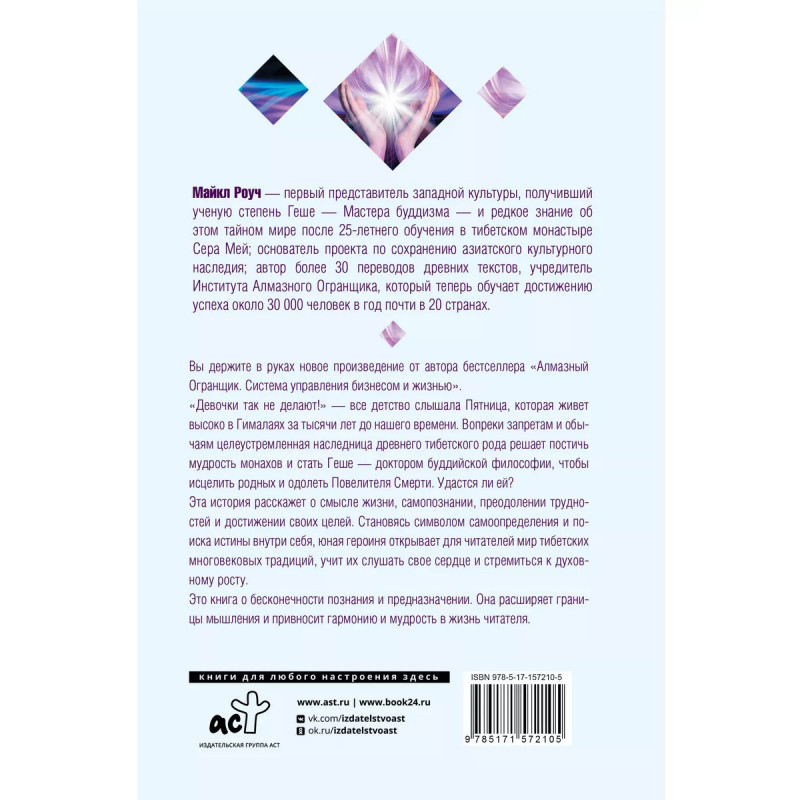 Секретные учения о самоисцелении. Катрин. Майкл Роуч - первый представитель западной культуры, получивший ученую степень Геше - Мастера буддизма - и редкое знание об этом тайном мире после 25-летнего обучения в тибетском монастыре Сера Мей; основатель проекта по сохранению азиатского культурного наследия; автор более 30 переводов древних текстов, учредитель Института Алмазного Огранщика, который теперь обучает достижению успеха около 30 000 человек в год почти в 20 странах. Вы держите в руках новое произведение от автора бестселлера "Алмазный Огранщик. Система управления бизнесом и жизнью". "Девочки так не делают!" - все детство слышала Пятница, которая живет высоко в Гималаях за тысячи лет до нашего времени. Вопреки запретам и обычаям целеустремленная наследница древнего тибетского рода решает постичь мудрость монахов и стать Геше - доктором буддийской философии, чтобы исцелить родных и одолеть Повелителя Смерти. Удастся ли ей? Эта история расскажет о смысле жизни, самопознании, преодолении трудностей и достижении своих целей. Становясь символом сам