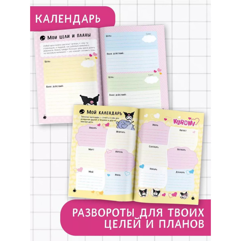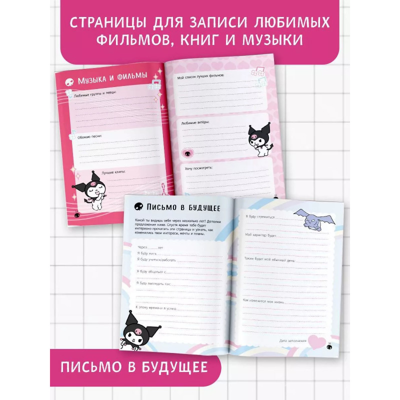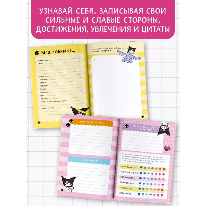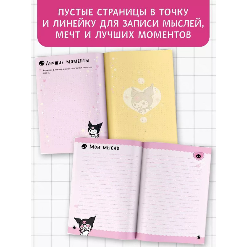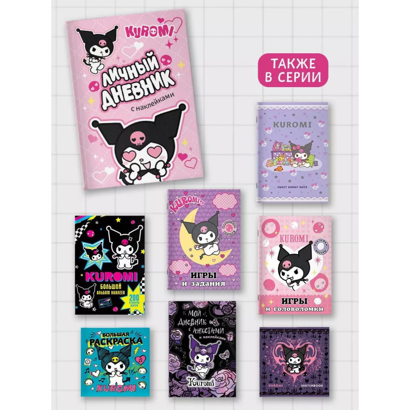А ты знаешь, что Куроми просто обожает делать записи в своем личном дневнике? Этот дневничок станет твоим настоящим другом! С ним ты сможешь поделиться всеми сокровенными мыслями и тайнами, а интересные задания помогут тебе лучше понять себя! Яркие наклейки отлично подойдут для украшения страниц с твоими записями!