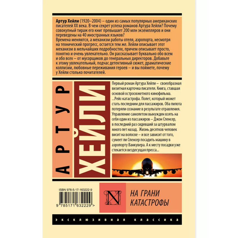 Первый роман Артура Хейли своеобразная визитная карточка писателя. Книга, ставшая основой остросюжетного кинофильма. ...Рейс-катастрофа. Полет, который может стать последним для пассажиров. Оба пилота потеряли сознание в результате отравления. Управление самолетом вынужден взять на себя один из пассажиров Джон Спенсер, в последний раз сидевший за штурвалом много лет назад. Жизнь десятков человек висит на волоске - и все зависит от того, сумеет ли Спенсер посадить машину в аэропорту Ванкувера. А к месту посадки уже стекается вездесущая пресса...