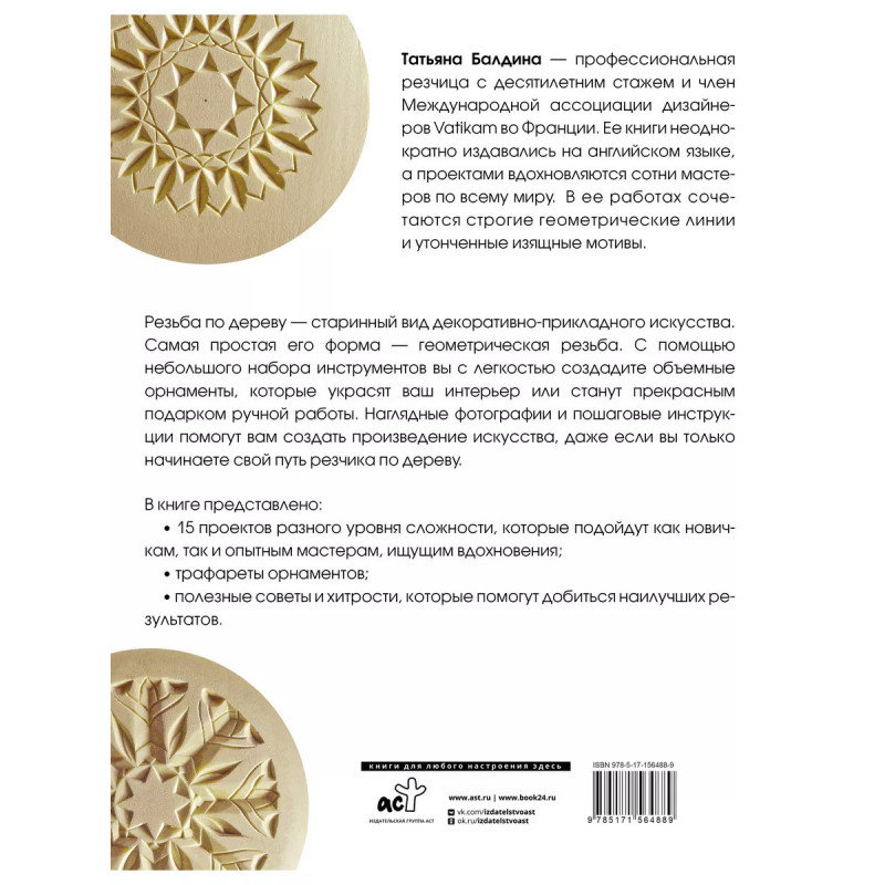 Резьба по дереву. Геометрические узоры. Резьба по дереву - удивительное искусство, позволяющее создавать красивые и уникальные узоры на деревянных поверхностях. Книга "Резьба по дереву. Геометрические узоры" - идеальное руководство для всех, кто хочет освоить эту оригинальную технику. В книге представлены подробные инструкции и иллюстрации, благодаря которым вы научитесь создавать неповторимые изделия из дерева. Откройте для себя новые возможности для самовыражения и творчества!