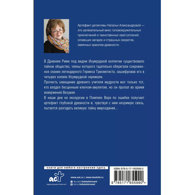 В Древнем Риме под видом Изумрудной коллегии существовало тайное общество, члены которого тщательно оберегали сокровенное знание легендарного Гермеса Трисмегиста, зашифровав его в четырех копиях Изумрудной скрижали. Прочесть завещание древнего учителя мудрости мог только тот, кто владел бесценным ключом-амулетом, но он пропал во время извержения Везувия. В наши дни на экскурсии в Помпеях Вера по ошибке получает артефакт глубокой древности и, чувствуя с ним незримую связь, пытается разгадать великую тайну мироздания...