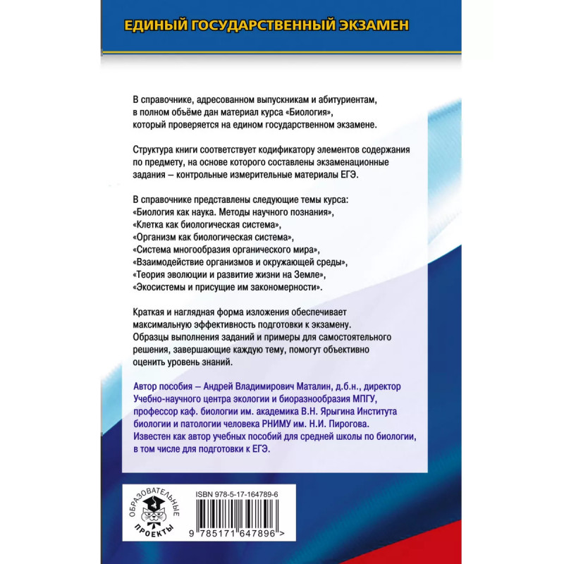 Справочник содержит теоретический материал по курсу биологии и тестовые задания, необходимые для подготовки к Государственной итоговой аттестации (ЕГЭ) выпускников 11-х классов общеобразовательных учреждений. Теория курса изложена в краткой и доступной форме. Каждый раздел сопровождается примерами тестов. Они дают исчерпывающее представление о типах заданий экзаменационной работы и о степени их сложности. В конце пособия имеются ответы на все задания. Пособие может быть использовано учащимися для подготовки к ЕГЭ и самоконтроля, а учителями для подготовки учащихся средней школы к итоговой аттестации по биологии. Книга адресована учащимся, учителям и методистам.