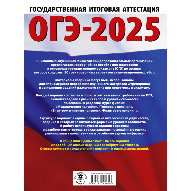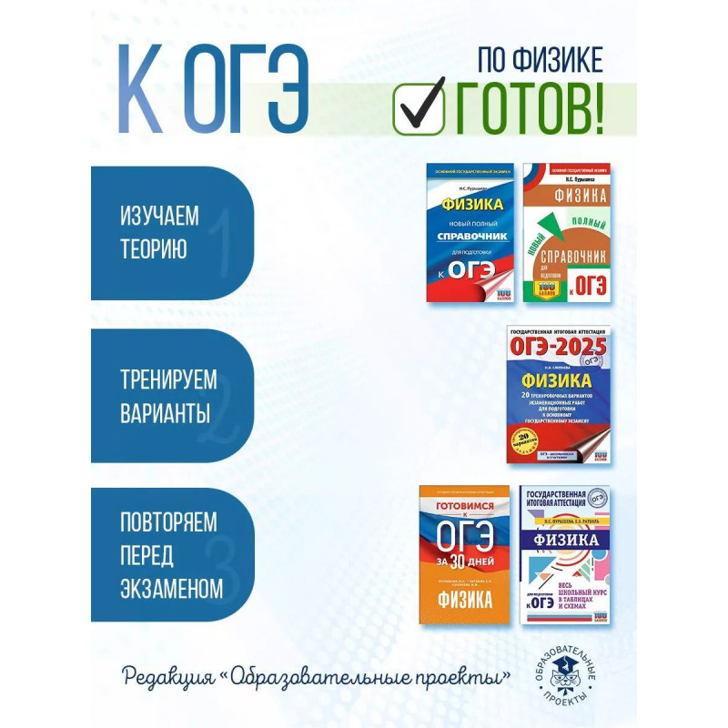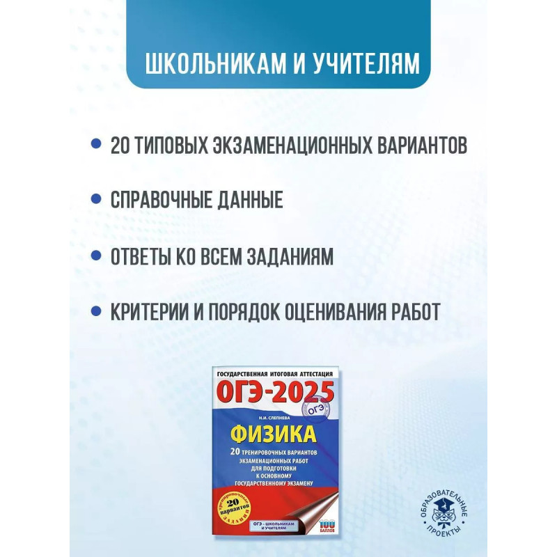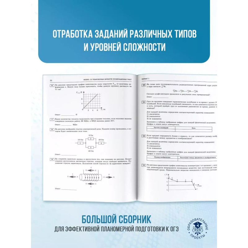 Сборник содержит 20 тренировочных вариантов экзаменационных работ по физике и предназначен для подготовки к основному государственному экзамену в 9 классе. Каждый вариант составлен в полном соответствии с требованиями основного государственного экзамена по физике, включает задания разных типов и уровней сложности. В конце книги даны ответы для самопроверки на все задания. Предлагаемые тренировочные варианты помогут учителю организовать подготовку к итоговой аттестации, а учащимися самостоятельно проверить свои знания и готовность к сдаче выпускного экзамена.